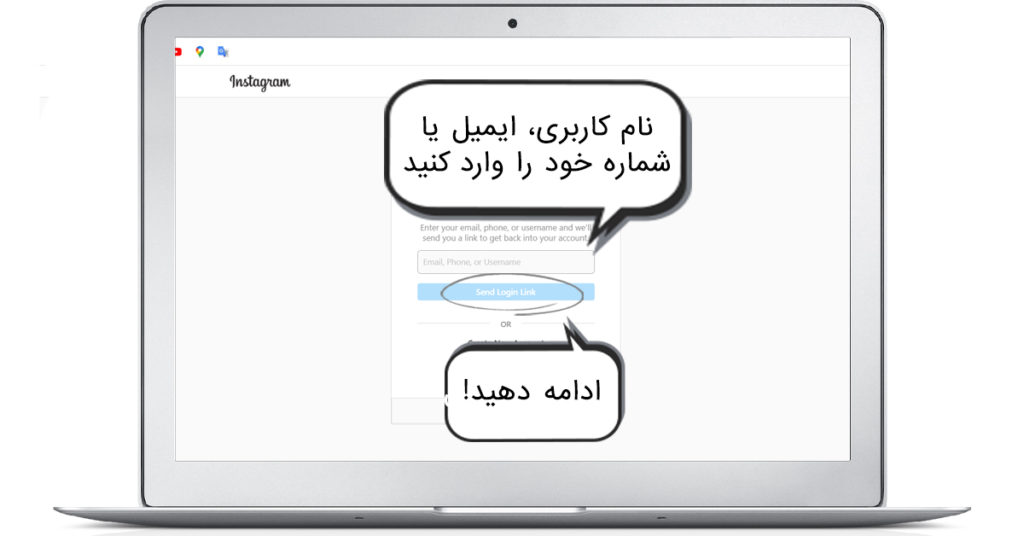 بازیابی رمز اینستاگرام از طریق سایت اینستاگرام