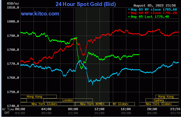 از طرفی پاسخ سخت پکن به حضور سخنگوی مجلس آمریکا در تایوان با شلیک چند موشک، باعث افزایش قیمت طلا برای سومین هفته متوالی شد. اما بعد، قیمت طلا به‌خاطر گزارش اقتصادی آمریکا کاهش‌یافت.