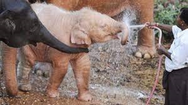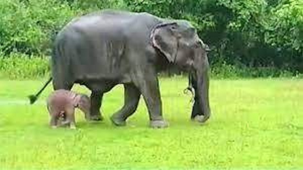 در تصاویر پخش شده از کانال دولتی، این بچه فیل که هنوز نامش اعلام نشده، با مادرش در حال آب بازی دیده میشود.