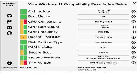 همانطور که مشاهده میکنید درصورتیکه سیستم شما هر یک از پارامترهای موردنیاز نصب ویندوز 11 را دارا باشد چراغ کنار آن سبز میشود، برای مثال سیستم من از TMP پشتیبانی نمیکند بنابراین من قادر به نصب ویندوز 11 نیستم.