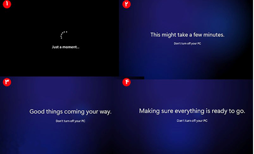در پایان نیز چندین سؤال شخصی از شما پرسیده خواهد شد که حتماً نیازی به تکمیل آن نیست و شما میتوانید با انتخاب گزینه skip از این مرحله گذر خواهید کرد، پس از آن پیغامهای مختلفی در صفحه شما نمایان میشود که ما تصاویر آن را در زیر آوردهایم، پس از پایان این پیغامها صفحه خوش آمد گویی ویندوز 11 نمایان خواهد شد.