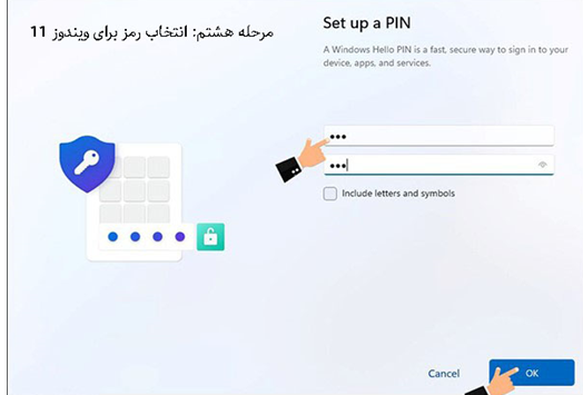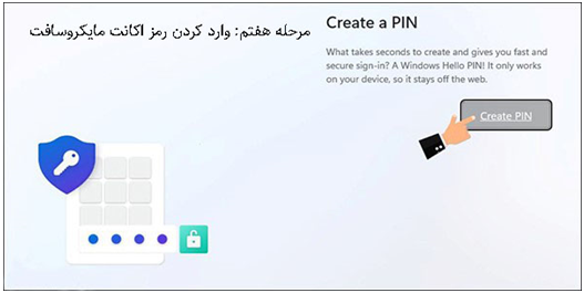 در مرحله بعد از تنظیمات از شما خواسته میشود تا یک پسورد برای ویندوز خود انتخاب کرده و ویندوز خود را ایمن کنید، بنابراین بر روی create pin کلیک کنید.
