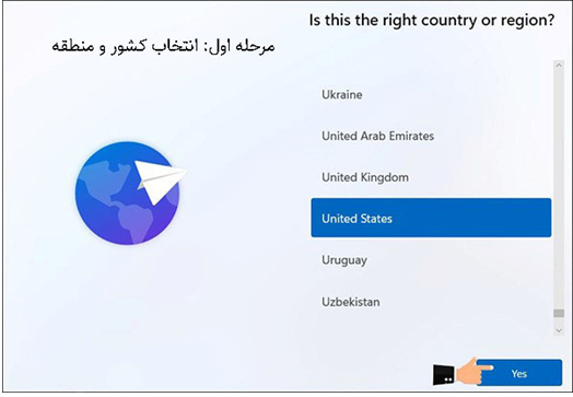 در مرحله اول باید کشور و منطقه موردنظر خود را انتخاب کنیم، پس از انتخاب کشور روی دکمه yes کلیک کنید.