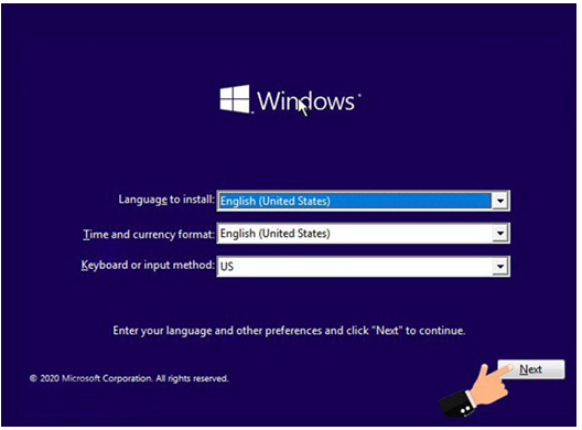 در اولین مرحله از نصب ویندوز 11 شما باید زبان ویندوز و منطقه زمانی آن را مشخص کنید، در این مرحله بهتر است که تنظیمات را دستکاری نکرده و بر روی دکمه next کلیک کنید تا وارد مرحله بعدی شویم، همچنین شما میتوانید با بررسی لوگو ویندوز در مراحل نصب از اصل بودن ویندوز خود اطمینان حاصل کنید.