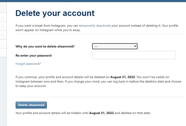 مراحل دیلیت اکانت اینستاگرام بهصورت دائمی