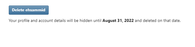 پس از اینکه وارد اکانت خود شدید به صفحه جدیدی منتقل خواهید شد، در پایین صفحه دکمهای با نام temprery delete account وجود دارد، اما قبل از آن ابتدا باید فرم مشخص شده را پر کنید، پس از اینکه فرم را پر کردید روی دکمه کلیک کنید، با فشردن دکمه صفحه ای به صورت Pop up باز خواهد شد که از شما سؤال میکند آیا مطمئن به انجام این کار هستید؟ و با فشردن دکمه yes اکانت شما غیرفعال خواهد شد.