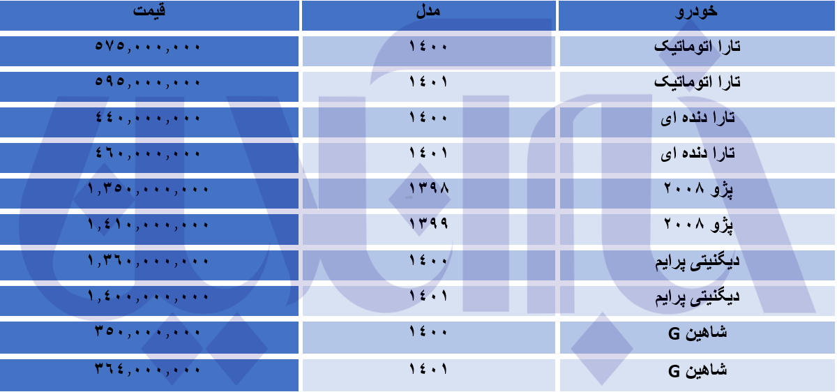 بررسی نوسانات قیمتی در بازار خودرو حاکی از جهش قیمت خودروهای تارا، شاهین، دیگنیتی و پژو ۲۰۰۸ از ابتدای فروردین ماه تاکنون است.
