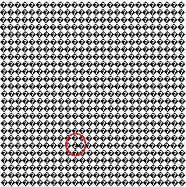 در این پازل مغزی، شما باید بدنبال که یک لوزی سیاه با علامت سوال وارونه باشید. فقط کسانی که واکنشهای برق آسا دارند قادر به تشخیص آن هستند.