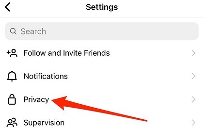 مرحله ۲: روی "Privacy" ضربه بزنید.