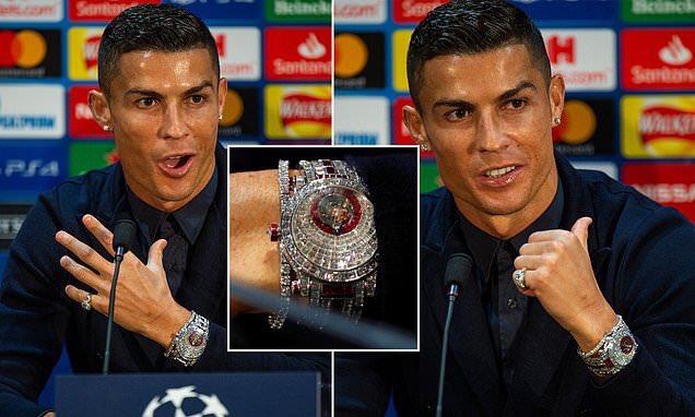 کریستیانو رونالدو، ثروتمندترین فوتبالیست دنیاست که علاقه بسیار زیادی به طلا و جواهرات دارد و امکان ندارد که عکسی از او پخش شود و شما انگشتر طلا یا ساعت را در دستانش نبینید. اولین جواهری که رونالدو استفاده کرد و ما دیدیم، گوشواره میخی به ارزش پانزده هزار یورو بود و در سال 2018 که در نشست خبری دو تیم یوونتوس و منچستر یونایتد شرکت کرد، ساعتی با روکش الماس و به ارزش 2/1 پوند به دست داشت و جالب است بدانید که علاقه او به ساعت در سال های اخیر نیز بیشتر شده و گفته میشود که ارزش سه ساعتی که دارد، در حدود 5/1 میلیون پوند است.