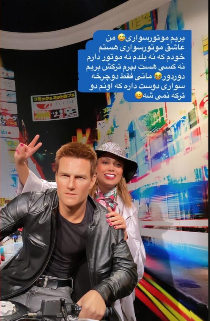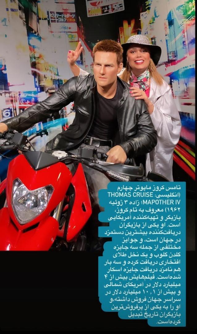 به گزارش سایت طلا، یکی از عکس های صبا راد در موزه مادام توسو که بسیار مورد توجه قرار گرفته است عکس او با تام کروز روی موتور است.