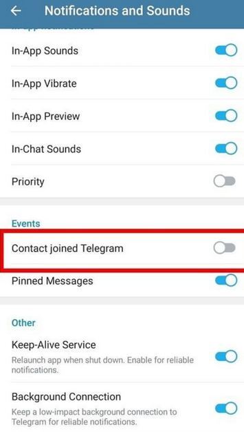 این گزینه ارسال اعلانهای عضویت مخاطبین در تلگرام را متوقف میکند، با این حال، نکته مهم اینجاست، وقتی مخاطبی به پلتفرم میپیوندد، تلگرام همچنان پیامهای درون چت را ارسال میکند. به گفته توسعه دهندگان XDA، تلگرام تنظیماتی برای جلوگیری از هشدارهای درون چت ندارد و به جز حذف دستی آنها راهی وجود ندارد.