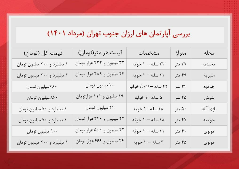 در گزارش زیر به بررسی قیمت و مشخصات آپارتمانهای ارزان جنوب تهران خواهیم پرداخت.