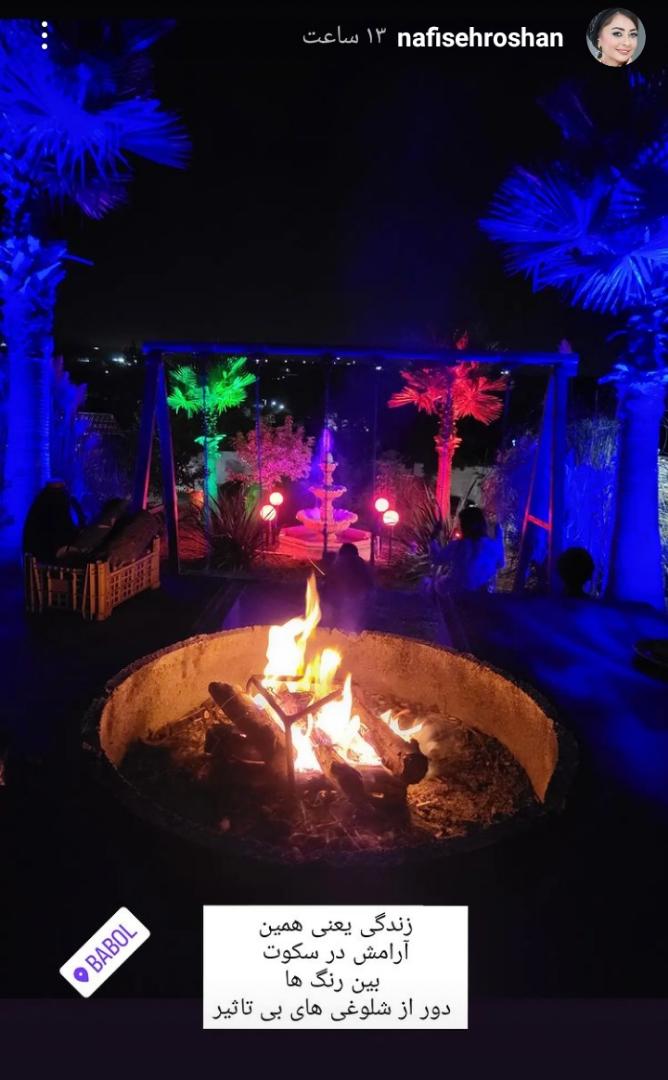 نفیسه روشن عکسی از سپری کردن تعطیلاتش در ویلای بابل منتشر کرده است.