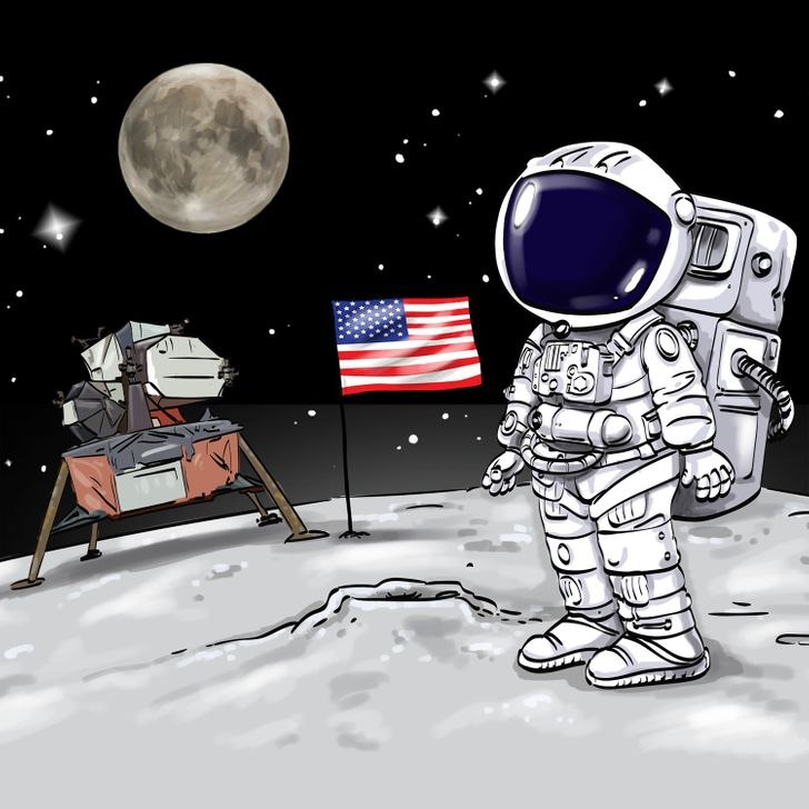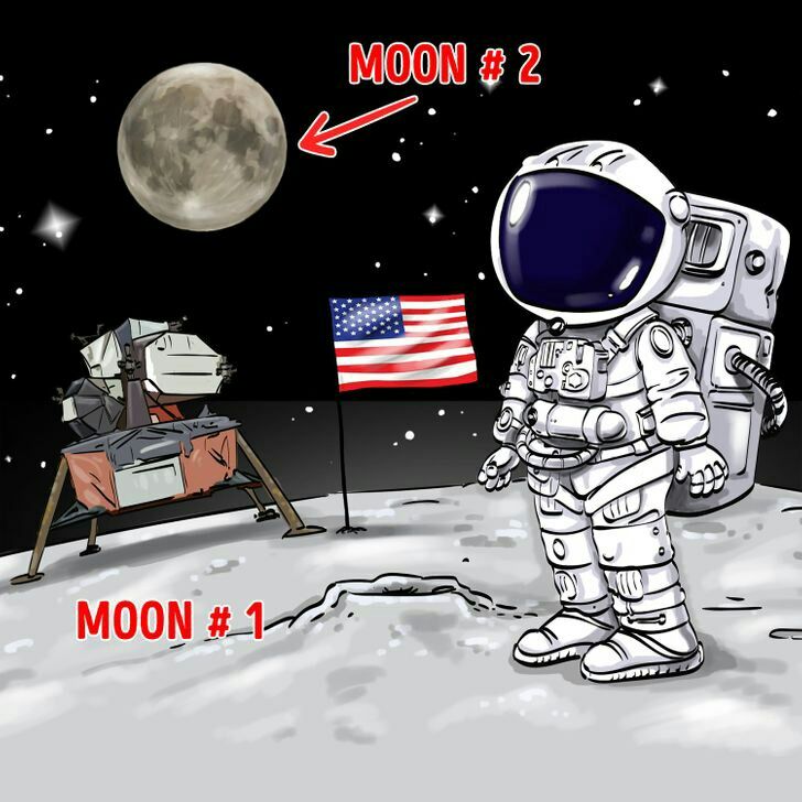 همانطوری که در عکس مشخص است دو تاه کره ماه وجود دارد یکی کره ماهی که فضانورد بر روی آن هست و دومی کره ماهی که در آسمان است.