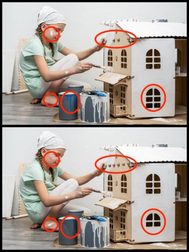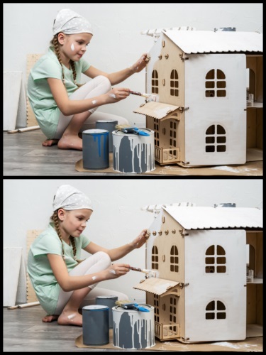 تست بینایی: این دختر کوچولو تلاش میکند تا خانه عروسکی خودش را به شکلی زیبا بسازد. شما هم باید تلاش کنید تا تفاوتهای پنهانی بین این دو تصویر را پیدا کنید . آیا می توانید هر پنج مورد را پیدا کنید؟