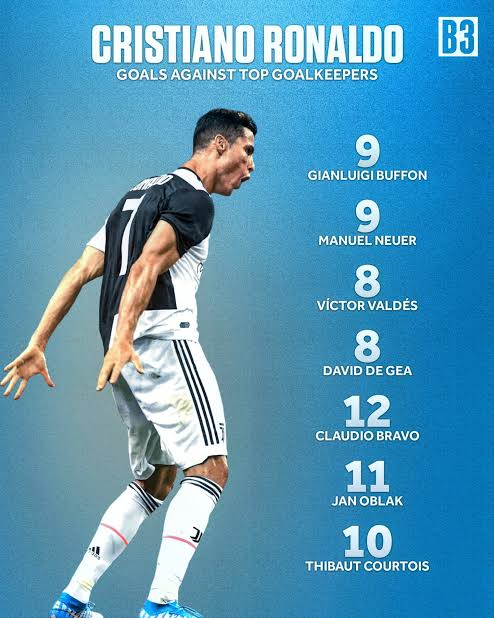 آمار بی نظیر رونالدو مقابل دروازه بان های شاخص فوتبال جهان در 20 سال گذشته به شرح زیر است: