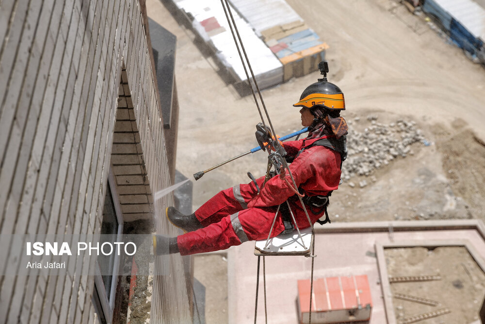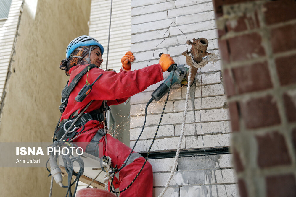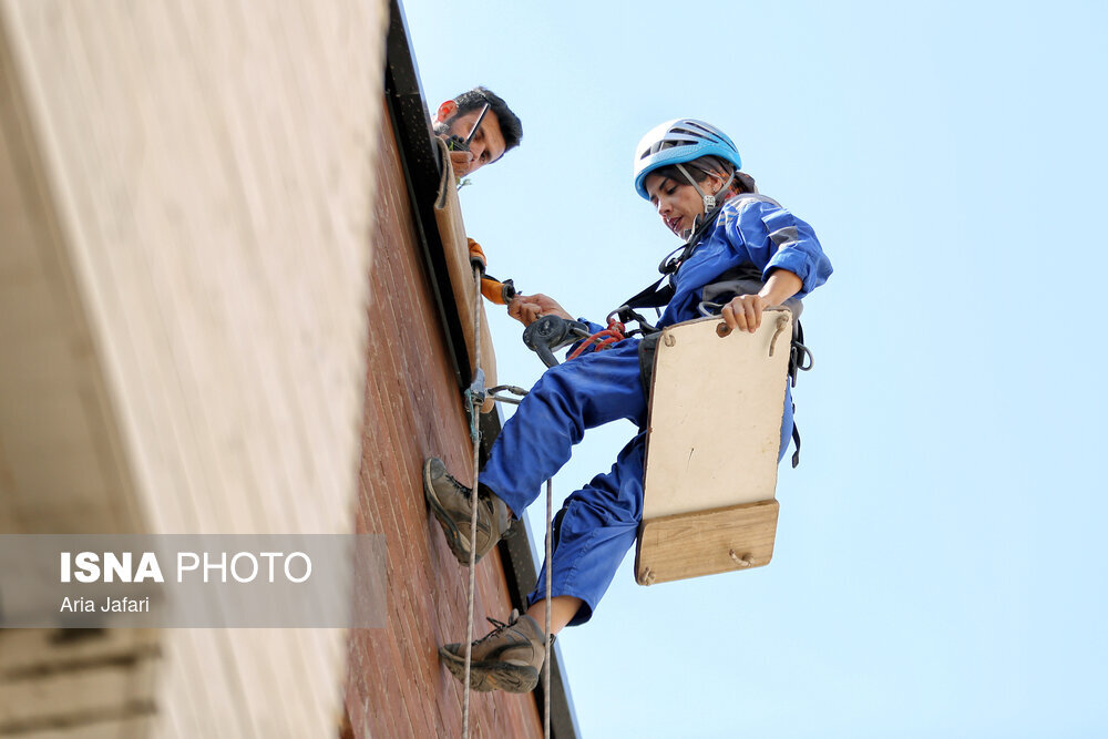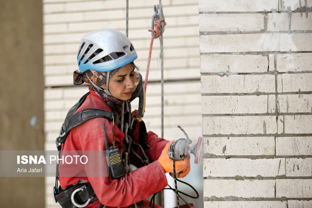 پگاه فرجیان، متولد ۱۳۵۹ و ۴۲ ساله، کارشناس مدیریت بازرگانی است. او حدود ۱۰ سال به عنوان کارمند در شرکتی خصوصی مشغول کار بوده، اما زمانی تصمیم گرفت که شغل دیگری داشته باشد؛ شغلی بسیار متفاوت از کاری که سال‌ها انجام می‌داد و علاقه اصلی و ورزش حرفه‌ای‌اش بود. پگاه سال‌ها به عنوان غارنورد، دره نورد و صخره ‌نورد فعالیت می‌کرد و حالا ورزش مورد علاقه‌اش به شغل روزانه تبدیل شده است. او هرروز از صبح تا عصر روی طناب است و کار می‌کند. پگاه می‌گوید: «زمانی فقط ورزش می‌کردم و هنوز وارد بازار کار نشده بودم. این کار با ورزش متفاوت است. بیش از یک سال پیش کار ایراتا (کار در ارتفاع) را آغاز کردم. پیش زمینه آن هم ۱۵ سال کار کوهنوردی، دره‌نوردی و غارنوردی بود. با این ورزش آشنا بودم و سال ۱۴۰۰ دوره ایراتا را گذراندم. از همان زمان بدون وقفه کارم را شروع کردم و واقعا این شغل را دوست داشتم.»