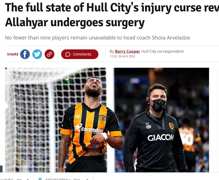 سایت «hulldailymail» انگلیس خبر بدی در زمینه مهاجم ایرانی داد و نوشت: پارگی همسترینگ اللهیار صیادمنش مثبت نیست و این مهاجم نیاز به عمل جراحی پیدا کرده است.