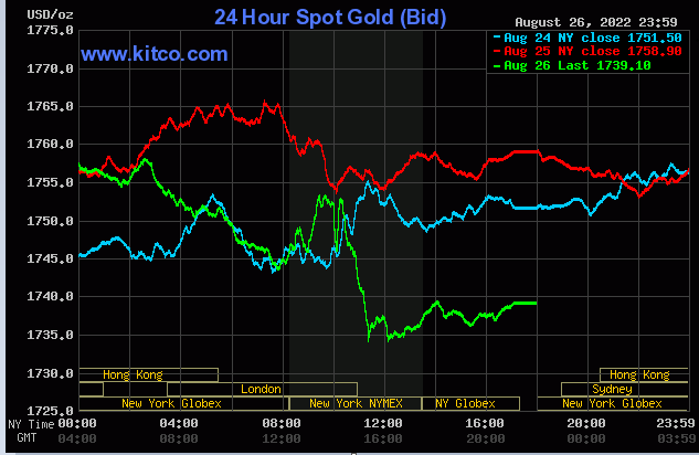 اطلاعات اولیه اقتصادی در آمریکا نشان میدهد بزرگترین اقتصاد دنیا 0.6 درصد در سهماهه دوم سال جاری میلادی کوچک شدهاست، این رقم در فصل زمستان برابر با 0.9 درصد بود. بهعلاوه، نرخ بیکاری در آمریکا در هفته منتهی به نوزدهم ماه اوت پایین آمدهاست. این اطلاعات اقتصادی باعث شد بانک مرکزی آمریکا تصمیم بگیرد به سیاستهای پولی سختگیرانه خود ادامه دهد. بالا رفتن نرخ بهره هزینه نگهداری طلا را افزایش داده و تمایل برای آن را پایین میآورد. بنابراین با توجه به اظهارات پاول بهنظر میرسد طلا همچنان تحت فشار خواهد بود.