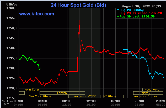 به دنبال اظهارات جسورانه جروم پاول، رئیس فدرال رزرو در سمپوزیوم جکسون هول در روز جمعه، قیمتها در روز دوشنبه به پایینترین سطح یک ماهه خود یعنی ۱۷۱۹ دلار و ۵۶ سنت رسید.