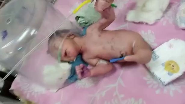 پزشکان این مرکز پس از تولد نوزاد، او و مادرش را به بیمارستان محلی اعزام کردند. بر اساس گزارش‌های محلی، یک پزشک بیمارستان در معاینات اولیه متوجه رشد ناقص نوزاد شد. همچنین در این نوزاد به جای ایجاد پا‌هایی کامل، یک عضو ناقص که شبیه به شاخ است شکل گرفته است.