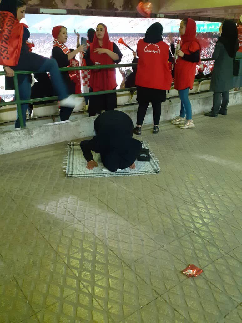 در حاشیه بازی پرسپولیس و صنعت نفت آبادان در هفته چهارم لیگ برتر فوتبال که با حضور زنان تماشاگر برگزار شد، نماز خواندن یکی از بانوان سوژه دوربین عکاسان شد.