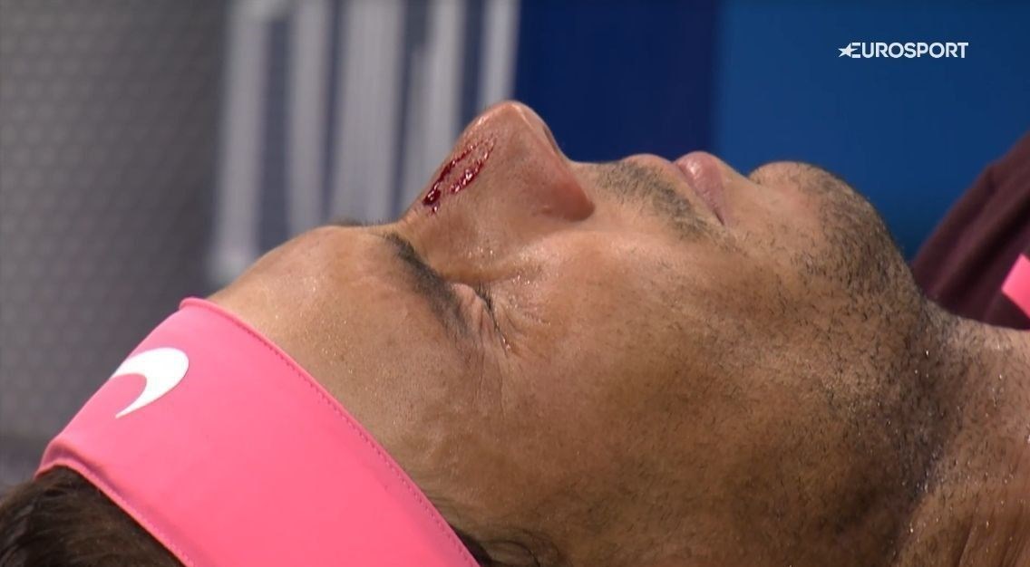 شکستن بینی نادال قهرمان تنیس دنیا در هنگام مسابقه