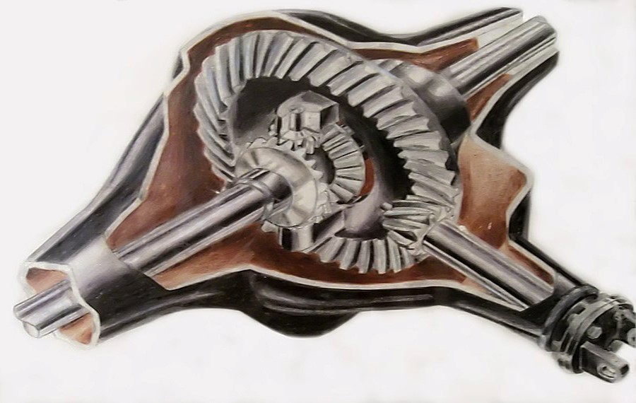 چرخ‌دنده کله گاوی: این چرخ‌دنده نیروی گشتاور گیربکس را به دیفرانسیل منتقل می‌کند تا دیفرانسیل نیرو را بین چرخ‌های محرک تقسیم کند.