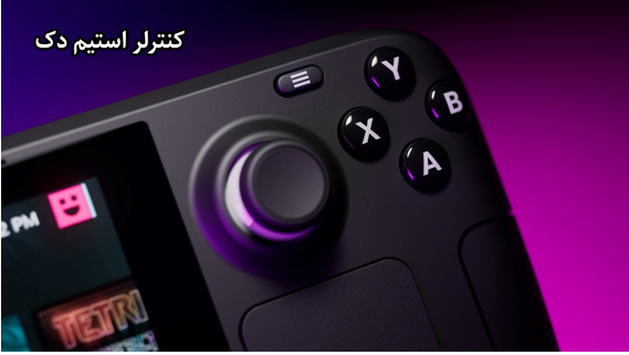 استیم دک در کناره‌های صفحه‌نمایش خود دکمه‌های بازی را قرار داده است و این دکمه‌ها در گوشه‌های بالایی کنسول قرار دارند و در واقع وقتی شما این کنسول را در دست می‌گیرید انگار که دسته بازی در دست دارید با این تفاوت که این دسته بازی دارای یک صفحه‌نمایش در وسط خود است.