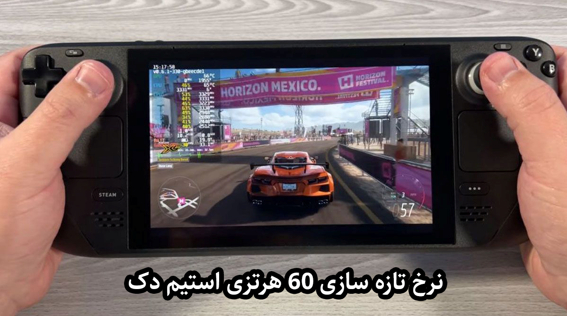 برویم به سراغ مشخصات استیم دک در زمینه صفحه نمایش، این کنسول از یک LCD 1200 در 800 اینچی استفاده می‌کند که نرخ تازه‌سازی آن 60 هرتز می‌باشد، این صفحه‌نمایش به‌اندازه یک مانیتور معمولی کارایی دارد اما در حد یک مانیتور گیمینگ نیست، برای همین می‌تواند تجربه خوب و معمولی را برای شما به ارمغان بیاورد و به‌راحتی به بازی‌کردن بپردازید.