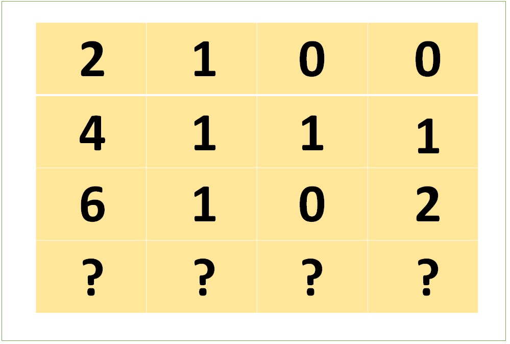 بنابراین، اگر به ترتیبی حساب کنیم، اعداد از دست رفته در ردیف ۴ به صورت زیر خواهد بود: