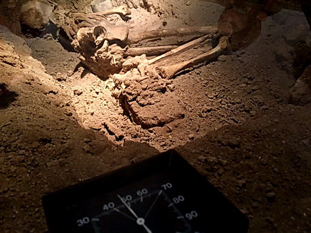 اسکلت با همه ضمایمش در تابوتی شیشه‌ای به نمایش گذاشته شده است که هدف از آن نشان دادن شیوه تدفین در هزاره دوم پیش از میلاد در فلات مرکزی ایران بوده است.