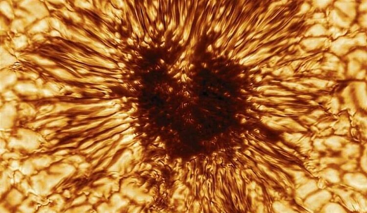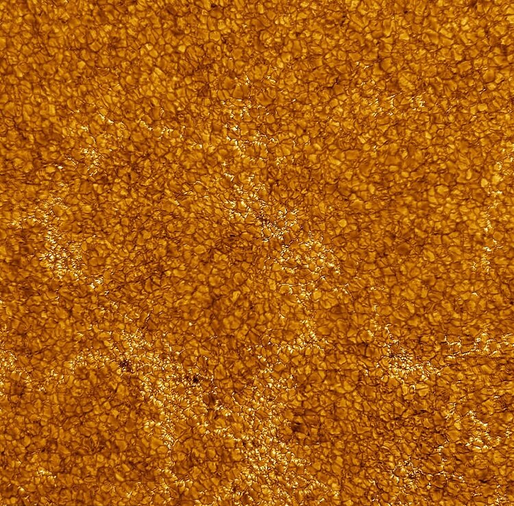 همچنین ساختارهای سلولمانند طلایی (هر کدام به وسعت ایالت تگزاس) که مانند لانه زنبوری در کنار هم قرار گرفتهاند، دیده میشوند که نشانهای از حرکات خشونتآمیز هستند که گرما را از داخل خورشید به سطح آن منتقل میکنند.