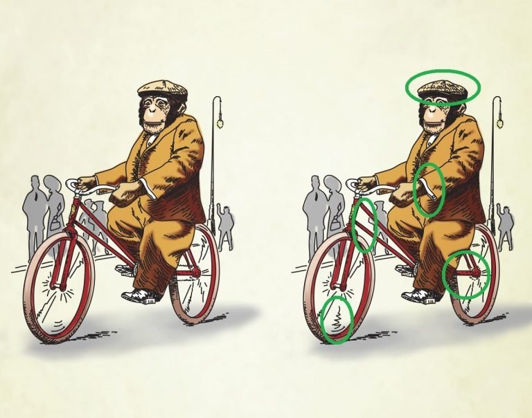 5 تفاوت میان این دو میمون چرخ سوار وجود دارد. برای رسیدن به راه حل، باید از ذهن خلاقتان استفاده کنید.
