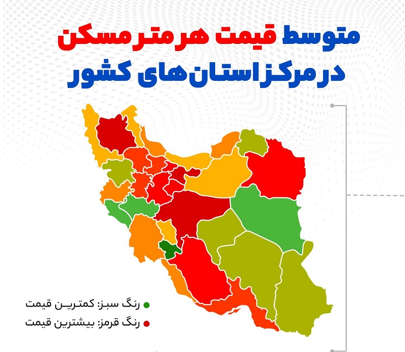 متوسط قیمت هر متر مسکن در مرکز استانهای سراسر کشور