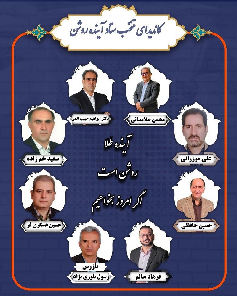 اعضا کاندیدای منتخب ستاد آینده روشن به شرح زیر می باشد.