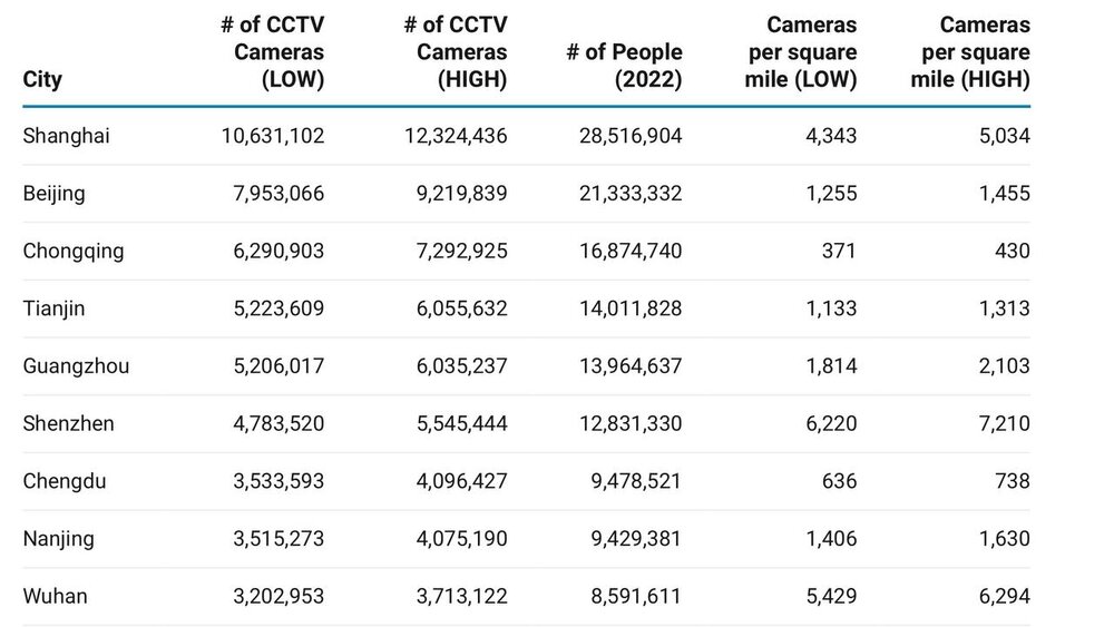 به گزارش سایت طلا، نابر گزارش وبسایت Comparitech شهرهای چین تحت نظارت شدید دوربینهای مداربسته هستند اما تنها چین نیست که شهروندان خود را با دوربینهای مداربسته تحت نظر میگیرد.