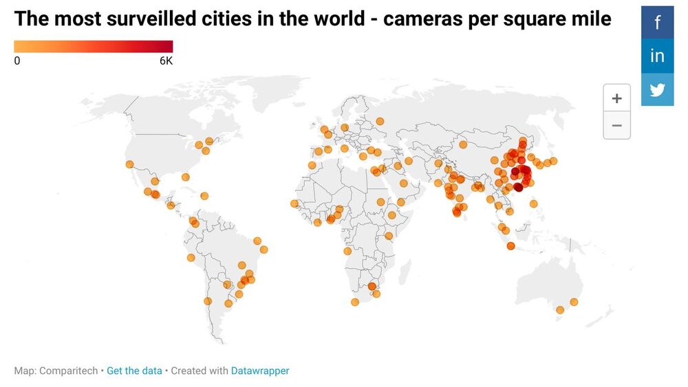 پرجمعیتترین شهرهای دنیا چقدر تحت نظر هستند؟