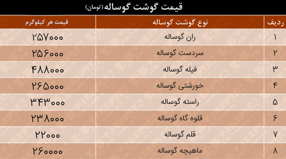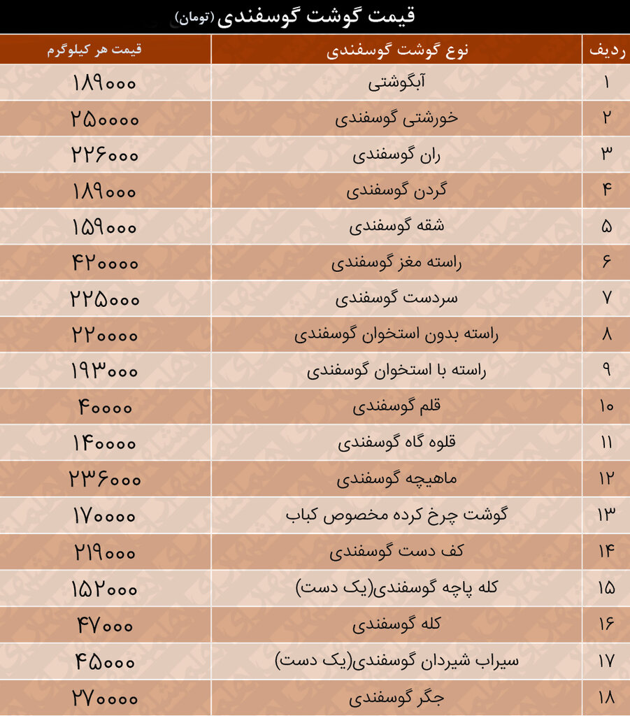 جدیدترین قیمت گوشت گوساله و گوسفند