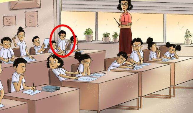 تستهای هوش تصویری راهی سرگرمکننده برای شناخت ضریب هوشی شما هستند. شما باید در عرض ۱۷ ثانیه تشخیص دهید کدام دانش آموز در کلاس درس و در حضور معلم تقلب می کند.