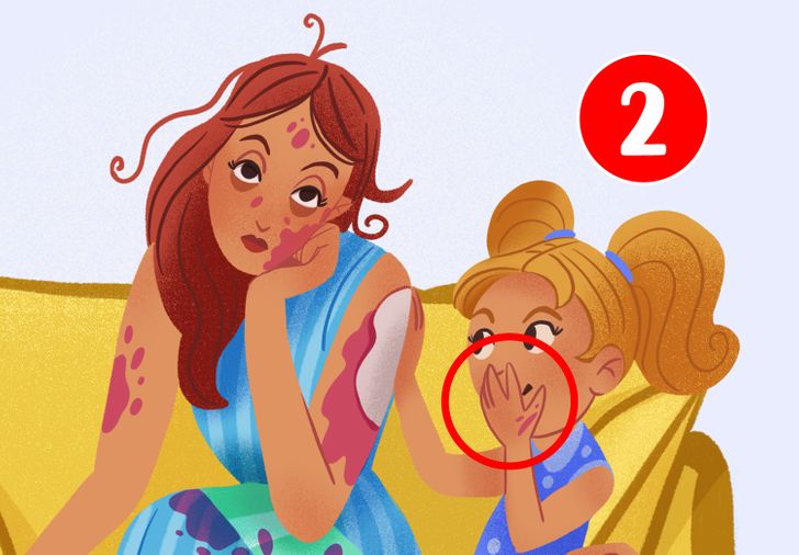 این دختر مسئول بی نظمی اتاق است. رنگ روی دستانش نشان میدهد که او مقصر است و مادرش را دلداری میدهد.