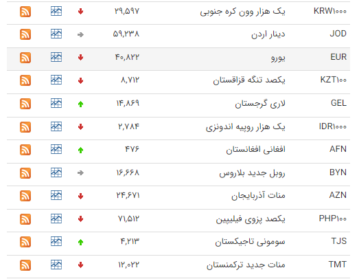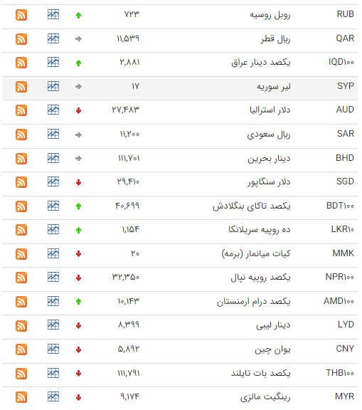 بر این اساس نرخ رسمی پوند، یورو، دلار استرالیا، دلار کانادا، یوان چین و لیر ترکیه کاهش و نرخ رسمی یکصد ین ژاپن، دینار عراق و افغانی افغانستان افزایش یافت. نرخ رسمی درهم امارات عربی متحده، لیر سوریه و ریال سعودی هم بدون تغییر باقی ماند.