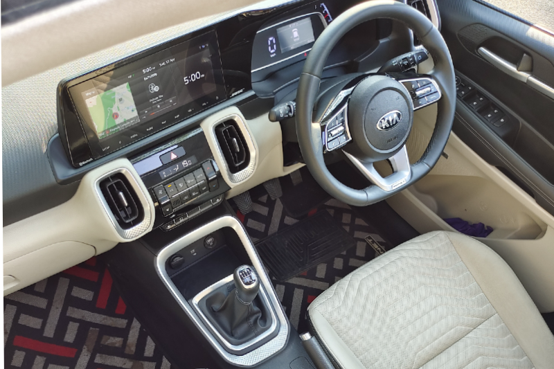 طراحی داخل کابین کیا سونت ۲۰۲۲ چیزی فراتر از یک خودروی اقتصادی است و به نظر میرسد که با الگوبرداری از زبان طراحی محصولات ردهبالاتر کیا ترسیم شده باشد. استفاده از نمایشگر ایستاده و غربیلک فرمان جذاب از ویژگیهای مثبت در کابین این خودرو به حساب میآیند. احتمالا از لحاظ کیفیت متریال نیز شاهد سطح کیفی تقریبا رضایتبخشی خواهیم بود.