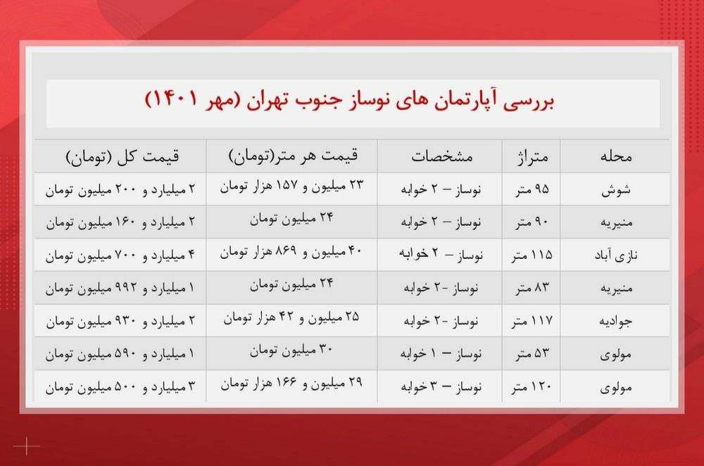 مشخصات آپارتمان های نوساز جنوب تهران + جدول قیمت