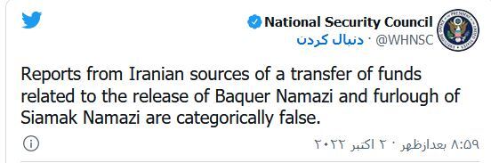شورای امنیت ملی آمریکا گزارشهای اخیر رسانهها درباره آزادسازی منابع ارزی بلوکهشده ایران در ازای آزادی و مرخصی «نمازیها» را رد کرد.