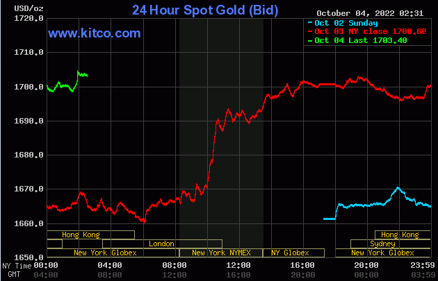 بهای هر اونس طلا در لحظه تنظیم این گزارش با 46 دلار افزایش به 1710 دلار رسید.