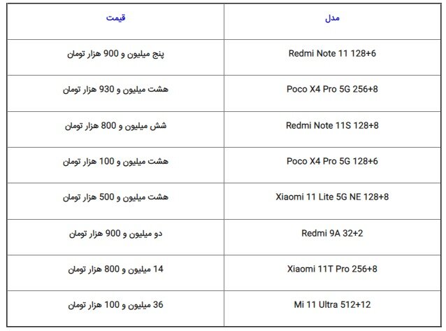 بین گوشیهای پرفروش شیائومی باید از Xiaomi ۱۱ Lite ۵G NE اسم ببریم. کمی قدیمی شده، اما با توجه به سختافزار قدرتمند، ظاهر زیبا و قیمت عادلانه هنوز محبوبیت خود را در بازار ایران حفظ کرده است. با توجه به ضخامت کم، این گوشی را بیشتر برای خانمها توصیه میکنند. گرانترین گوشی حال حاضر شیائومی در بازار ایران Mi ۱۱ Ultra است. شیائومی ۱۲ پرو و شیائومی ۱۲ هم بیش از ۲۰ میلیون قیمت دارند. شیائومی ۱۲x رقیب گلکسی S۳۲ FE است و همان حدود قیمت فروخته میشود. بین گوشیهای ارزانقیمت شیائومی باید به ردمی ۹A، پوکو C۳۱، ردمی ۹C و Poco ۳۱ اشاره کنیم که قیمت آنها بین ۲.۵ تا ۳.۵ میلیون تومان است.