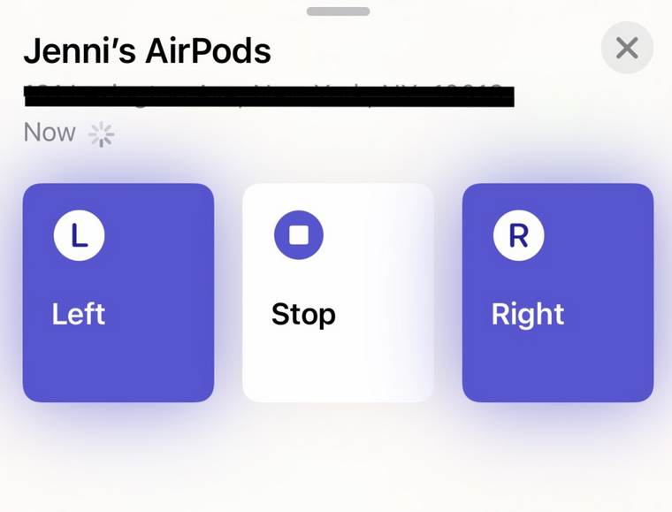 ۴. گزینهای برای پخش صدا از سمت چپ، راست یا هر دو ایرپاد دریافت خواهید کرد. هنگامی که آن را یافتید دکمه توقف را فشار دهید.