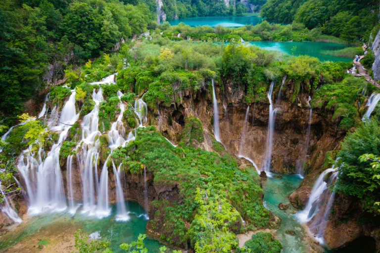 پارک ملی دریاچه‌های پلیتویس در کرواسی یک چشم‌انداز طبیعی خیره‌کننده است که در قلب خود 16 دریاچه پلکانی دارد که با آبشارهای شگفت‌انگیزی به هم می‌پیوندند. این آبشارها در نهایت به یک دره آهکی عمیق الهام‌بخش ختم می‌شوند. با توجه به طبیعت عجیب، هر دریاچه سایه متفاوتی از آبی به خود می گیرد و منظره ای تخیلی ایجاد می کند. در اطراف دریاچه ها جنگلی انبوه باستانی وجود دارد که هنوز خانه برخی از خرس ها و گرگ های اروپایی است.